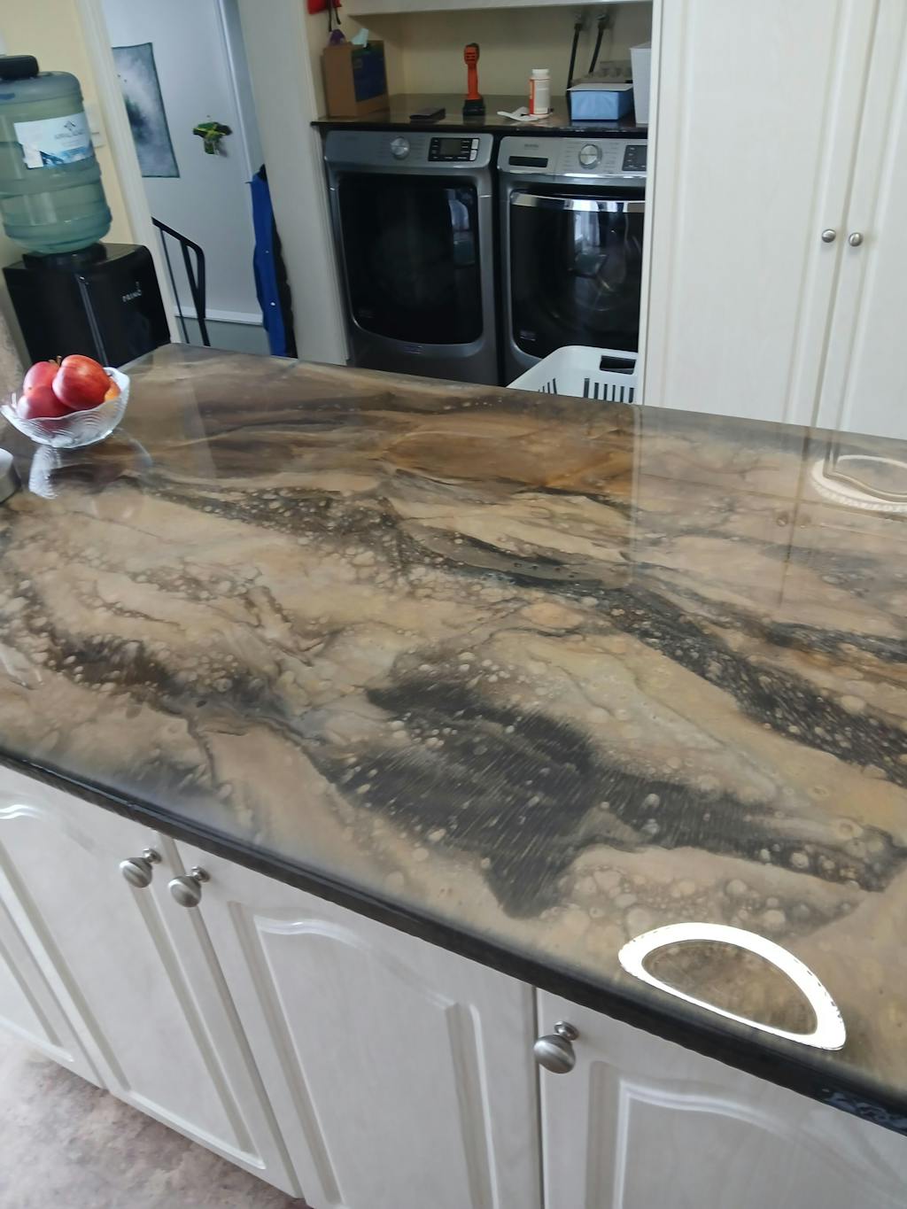 Epoxyed my countertops and island. Pleased with your product. Didn't give a 5 star because it seems to show scratches, we have not put anything on it for over a week and then nothing heavy
